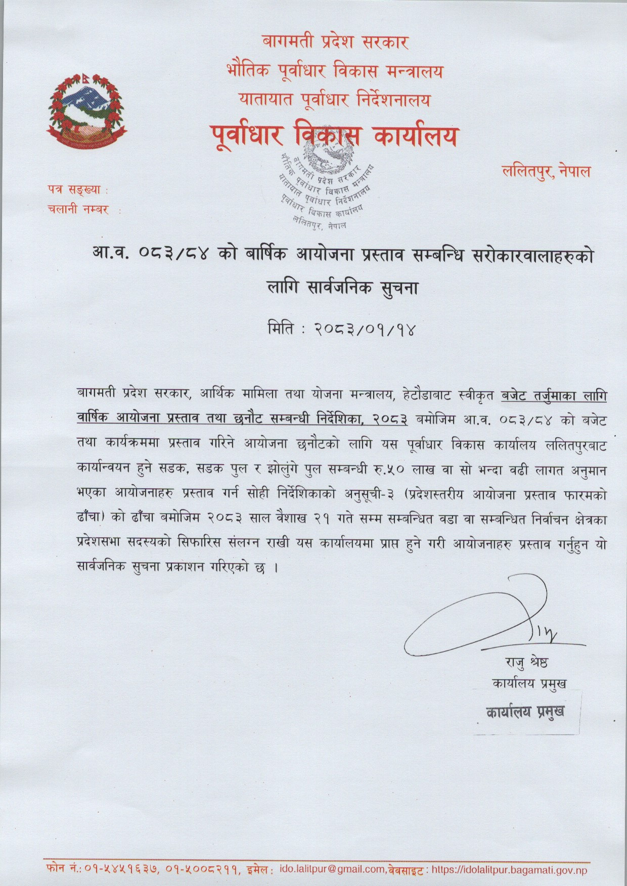 © सर्वाधिकार सुरक्षित पूर्वाधार विकास कार्यालय